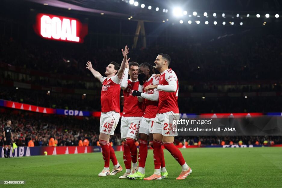 "Арсенал": Райя, Тимбер, Салиба, Инкапье (Москера, 88), Калафьори (Льюис-Скелли, 90+2), Райс, Субименди, Эзе, Сака, Троссард (Мадуэке, 78), Мерино (Нванери, 88).