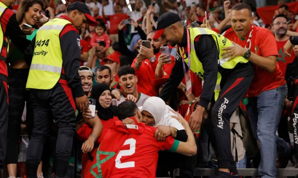 Нимчорак финалдаги Испанияга қарши пенальтилар сериясида ўзининг ҳал қилувчи зарбасидан сўнг Ашраф Ҳакими хурсандчилигини одамлар орасида турган онаси билан нишонлаш учун борди ва камерачилар эътиборини тортди ҳамда онасининг юзидан мағрурона ўпган ҳолда суратларга муҳрланди. Ҳимоячи Марокашнинг чорак финалдаги Португалияга қарши ўйиндаги ғалабасидан кейин ҳам худди шу ишни такрорлади ва онасини бағрига босиш учун трибуна томон яқинлашди. Испанияга қарши ўйиндан сўнг Ҳакими ижтимоий тармоқдаги саҳифасига онаси билан бирга тушган суратини жойлаштириб, шундай изоҳ қолдирди: "Мен сизни яхши кўраман, онажон".