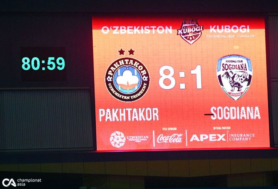 Ўзбекистон кубогининг нимчорак финалидан ўрин олган "Пахтакор" - "Сўғдиёна" учрашувида мезбонлар ғалабага эришишди (8:1).