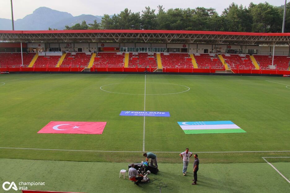 "Championat.asia" xodimlari Tolibjon Qosimov va Jahongir Fayzullaev o'yin bo'lib o'tadigan "Alanya" stadioniga uchrashuv boshlanishidan 3 soat oldin yetib keldik. Bu vaqtda bellashuvga tayyorgarlik avjida.
