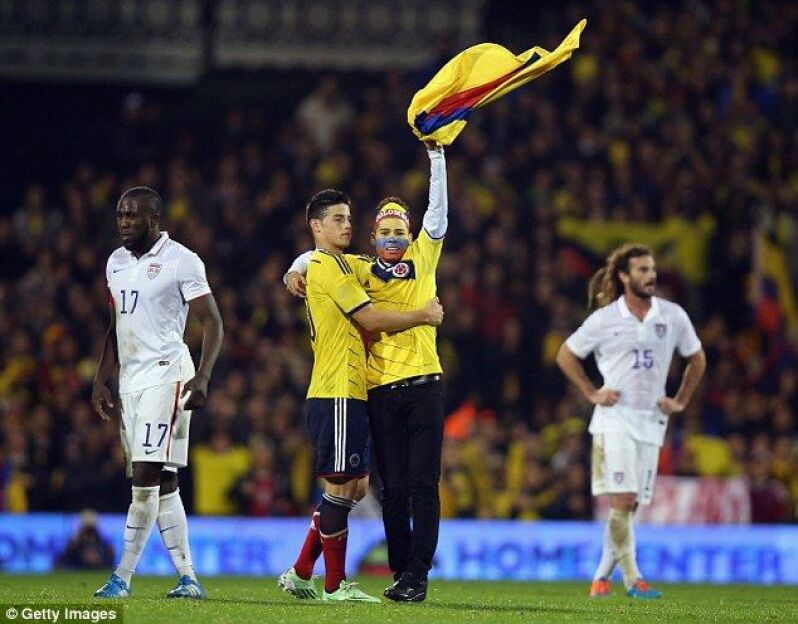 AQSH va Kolumbiya terma jamoalarining o'rtoqlik uchrashuvida "Real"ning yangi yulduzi Xames Rodriges bilan qo'l berib ko'rishish uchun ko'pgina ishqibozlar maydonga tushishdi.