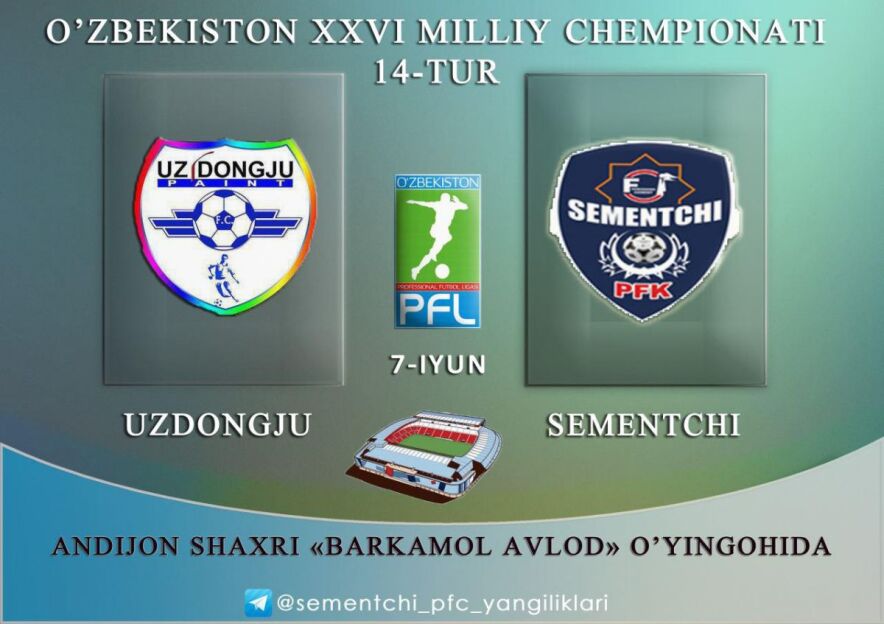 O'tgan turda dam olgan “Cementchi” navbatdagi turda Andijonda “Uz-Dong-Ju” klubi mehmoni bo'ladi. Ushbu mavsumda uy uchrashuvlarini Andijon shahrining “Barkamol avlod” o'yingohida o'tkazayotgan “Uz-Dong-Ju” jamoasi bu safar ham jamoamizni ushbu maydonda qabul qiladi.
