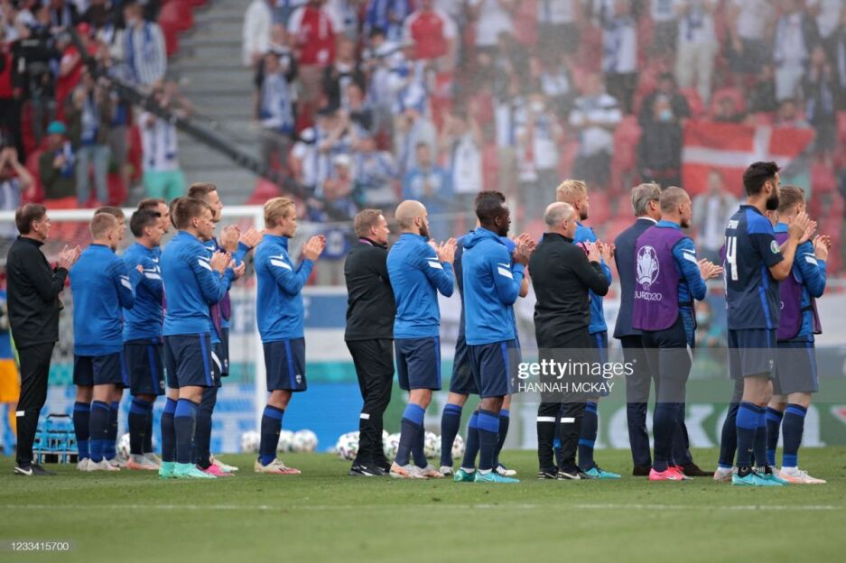 Финляндия терма жамоаси футболчилари Дания ўйинчиларини майдонда қарсаклар билан қарши олишди