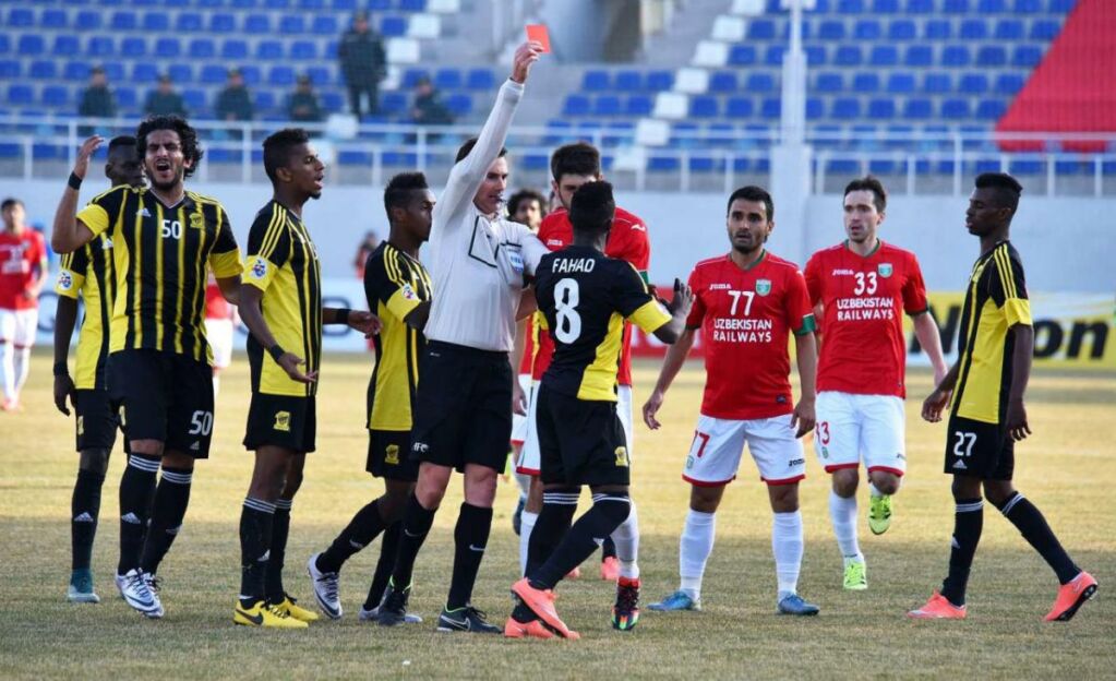 Ўйиннинг 89-дақиқасида Сардор Мирзаев ҳисобни тенглаштирганидан сўнг, “Локомотив” футболчилари учрашувни тезроқ давом эттириш ҳаракатига тушишди. Жасур Ҳасанов бу йўлда тўпни майдон марказига тезроқ олиб келишни истади, Фаҳад Ал-Муваллад эса тўпни беришни хоҳламади, натижада икки ўртада келишмовчилик юзага келди. Ҳакам вазиятни чигаллаштиришни истамай, ҳар икки футболчига тўғридан-тўғри қизил карточка кўрсатди.